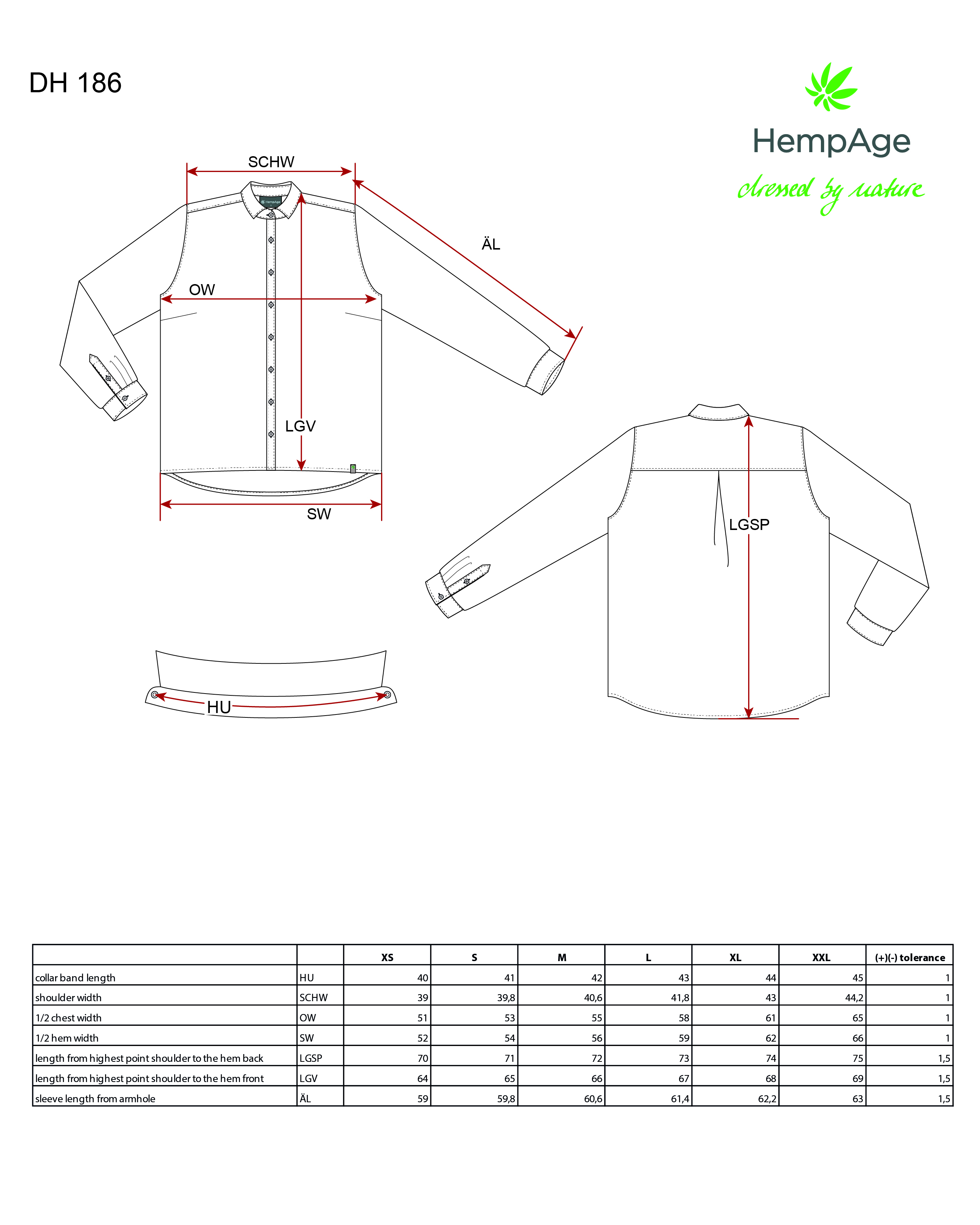 - 100% Hanf, Gewebe, Perlmuttknöpfe, Brustabnäher