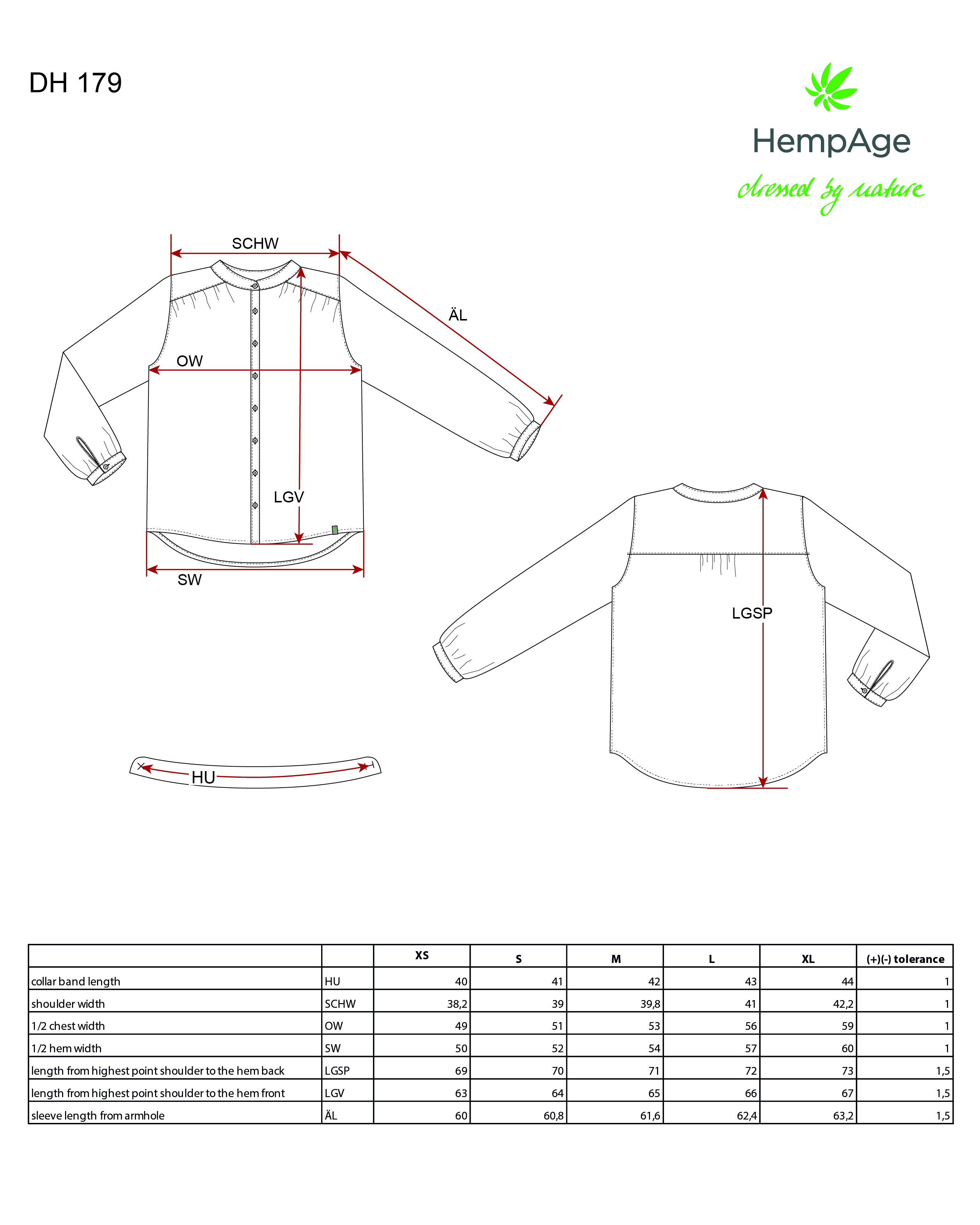 Material: 55% Hanf und 45% Baumwolle (kbA*) (130g/m²), enthält nichttextile Teile tierischen Ursprungs (Knöpfe)